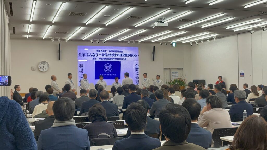 倫理経営講演会(於 戸塚区総合庁舎3階)にて、当社は2回目の活力朝礼実演を致しました。